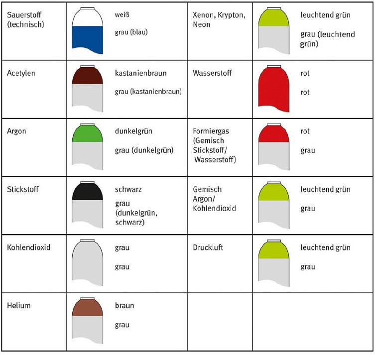 Abb. 5 Farbkennzeichnung für Gasflaschen nach DIN EN 1089-3 (technische Gase)