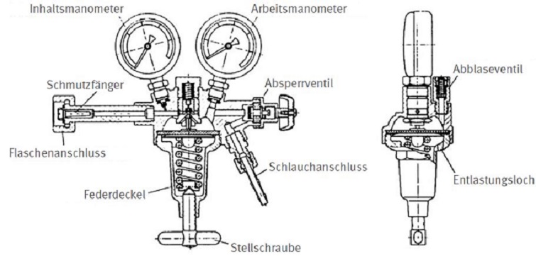 Die Konstruktion und wichtige Bestandteile eines Flaschendruckreglers zeigt Abb. 6.