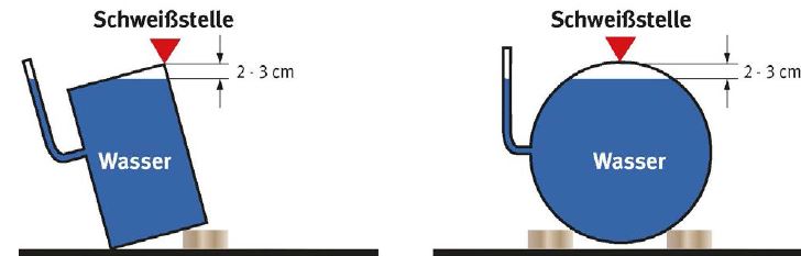 | Bei Verwendung flüssiger Brennstoffe kann es bei Zündung an der Wasseroberfläche Flächenbrände geben. Ausführliche Hinweise über sicherheitstechnische Maßnahmen sind im Merkblatt DVS 1812 enthalten. |