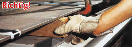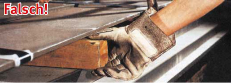 Bild 20-2: So wird ein Unterlegholz richtig angefasst. Die Finger sind nicht gefährdet