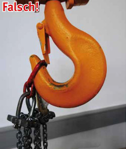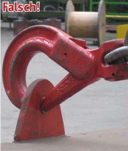 Bild 22-1: Das Aufhängeglied ist für den Kranhaken zu klein. Es wird aufgeweitet und verbogen.