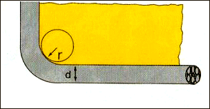 Bild 22-3: Scharfe Kante, wenn der Kantenradius (r) kleiner als Durchmesser (d) des Seiles, der Kette oder der Dicke des Hebebandes ist.