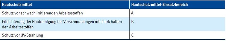 Tabelle 6-2 Hautschutzmittel – Einteilung nach Einsatzbereichen