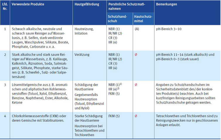 Tabelle 6-4 Hautgefährdung und Maßnahmen bei der Teilereinigung und Entfettung