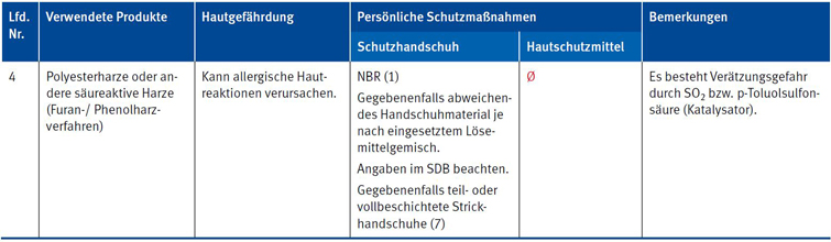 Tabelle 6-8 Hautgefährdung und Maßnahmen in der Gießerei