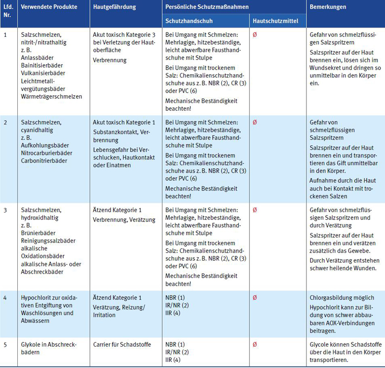 Tabelle 6-9 Hautgefährdung und Maßnahmen in der Härterei