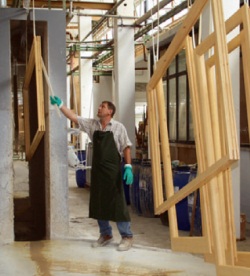 Chromathaltige Holzschutzmittel und Steinkohlenteerölpräparate dürfen in stationären Anlagen nicht im Spritz-/Sprühverfahren verarbeitet werden.