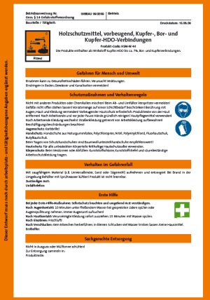 Entwürfe von Betriebsanweisungen für verschiedene Holzschutzmittel sind im Internet abrufbar unter www.holz-bg.de/pages/service/download.htm und unter www.wingis-online.de