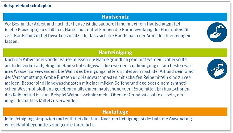 | Beispiele für einen Hautschutzplan finden Sie unter: