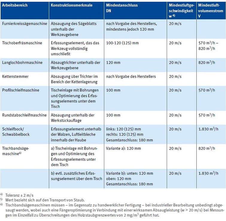 Bedingungen für staubgeminderte Arbeitsbereiche an stationären Maschinen nach TRGS 553