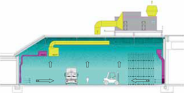 | V = 7000 m³/h; Zuluft pro m² Fläche: | V = 28,6 m³/h m² | |