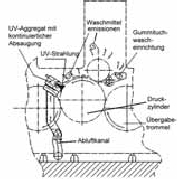 Fortschrittliche UV-Trocknersysteme können auf Grund des Sicherheitskonzepts von Trockner- und Druckmaschinenhersteller eine erhebliche Verkürzung dieser Waschzeiten im UV-Bogenoffsetdruck realisieren. Dabei kann die maximal theoretische Lösemittel- Konzentration im Trockner rechnerisch ermittelt werden. Unter der Annahme, dass sämtliches eingebrachtes Waschmittel in den Trocknerbereich gelangt, lässt sich mit der abgesaugten Luftmenge, der Waschmittelmenge und Molmasse sowie der Betrachtung als ideales Gas die maximale Konzentration ermitteln. Ist die Luftmenge ausreichend groß, so werden je nach Typ des Waschmittels (Flammpunkt > 55 °C) maximale Konzentrationen von weniger 1 % der UEG erreicht.