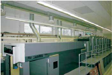 Abbildung 45: Bogenoffsetmaschine im Drucksaal: Alle abgesaugten Emissionsbestandteile werden mittels Abluftleitungen über Dach abgeführt, wodurch ein Eintrag in den Arbeitsbereich ausgeschlossen wird.