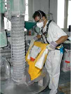 Anzustreben ist eine möglichst direkte Erfassung der Lösemitteldämpfe, des entstehenden Staubes und Vermeidung der Ausbreitung der Gefahrstoffe im Raum. Dazu muss die Oberfläche, von der Lösemittel abdampft, minimiert werden und der bei der Zugabe entstehende Staub mit einer Erfassungseinrichtung halboffener oder möglichst geschlossener Bauart an der Emissionsquelle erfasst werden.