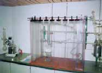 Die vorstehend beschriebene Destillation wird mit gleichem Aufbau in einem Laborabzug durchgeführt (Abbildung 52), die Messung zeigt, dass hierbei die Lösemittelkonzentration im Atembereich unter der analytischen Bestimmungsgrenze liegt, also bei dieser Arbeitsweise eine dauerhaft sichere Einhaltung der Luftgrenzwerte erreicht werden kann.