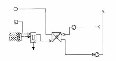 Die praktische Umsetzung kann mit einer Kombination aus Patronenfilter min. F5 (Abreinigung mit Druckluftimpulsen) zur Staubabscheidung und nachgeschalteten Rotationswärmetauscher (Regenerator) erfolgen. Dieser gewährleistet gleichzeitig einen hohen Wirkungsgrad für die Wärmeübertragung. Damit ein Verschleppen von an den Wärmeübertragerflächen anhaftenden Staubpartikeln vermieden wird, wird ein spezielles mit Druckluft arbeitendes Reinigungssystem eingesetzt.