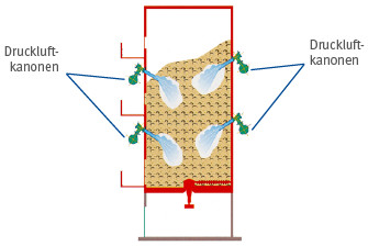 Abb. 7.1 Prinzip-Skizze eines Silos mit Druckluftkanonen