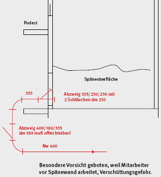 Das Personal, das mit der Entleerung befasst ist, hat sich vor Beginn der Arbeiten über den Füllstand und die Verteilung der Späne im Silo zu orientieren.