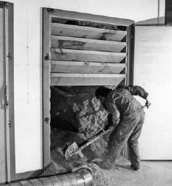 Die Jalousiebretter werden von unten aus nach und nach entfernt; so können die Späne durch die Türöffnungen ausgezogen werden. Durch Abgraben der Späne über dem Türrahmen von außerhalb des Silos muss der Durchbruch durch die Späne nach oben ermöglicht werden. Bei größerer Füllhöhe muss mit Stocher-Werkzeugen von oberhalb der Zugangstüren über die Stocher-Öffnungen der Durchbruch oberhalb der Türen herbeigeführt werden.