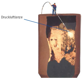 Für die Beseitigung von Anbackungen an den Silowänden eignen sich Druckluftlanzen recht gut.