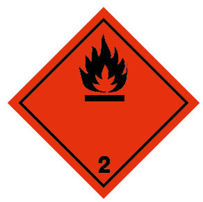 Jede Flüssiggasflasche muss zur Beförderung – zusätzlich zu weiteren gesetzlich vorgeschriebenen Kennzeichnungen – mit einem Gefahrzettel oder einem unauslöschbaren Gefahrzeichen gemäß Muster in ADR 5.2.2.2.2 versehen sein (Abbildung 1).