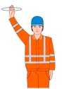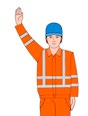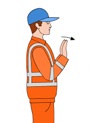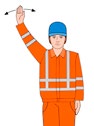 | Abfahren | Rechten Arm nach oben halten, Handfläche zeigt nach vorn und Arm seitlich hin- und herbewegen | ![]() |