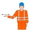 | Links fahren – vom Einweiser aus gesehen | Den linken Arm in horizontaler Haltung leicht anwinkeln und seitlich hin- und herbewegen | ![]() |