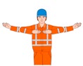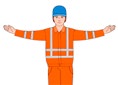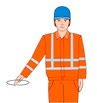 | Rechts fahren – vom Einweiser aus gesehen | Den rechten Arm in horizontaler Haltung leicht anwinkeln und seitlich hin- und herbewegen | ![]() |