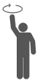 Rechten Arm nach oben halten, Handfläche zeigt nach vorn und macht eine langsame, kreisende Bewegung | ![]() |