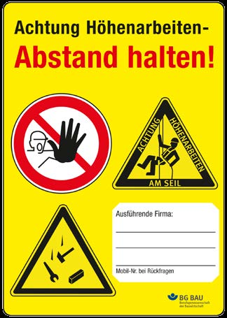Beim Auf- und Abbau des Trag- und Sicherungssystems und beim Einstieg in das Tragsystem müssen bei Absturzgefahr Maßnahmen zum Schutz gegen Absturz (z. B. Geländer, PSAgA) getroffen werden.