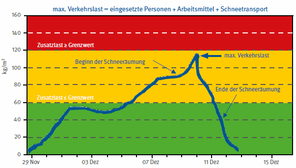 Im unten abgebildeten Beispiel ist der kurzzeitige Anstieg der Verkehrslasten durch die Schneeräumungsteams und deren Technik während einer Räumung erkennbar (Abbildung 9).