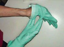 Schutzhandschuhe vor dem Ausziehen reinigen