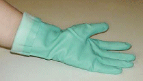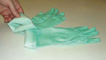 Handschuhe vor dem Tragen auf Beschädigungen prüfen. |
