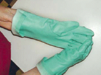 - Schutzhandschuhe dürfen keine Verfärbungen haben oder spröde sein.