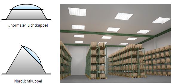 Beleuchtung: Mit Dachoberlichtern können Innenräume besonders gleichmäßig und hell mit Tageslicht beleuchtet werden.