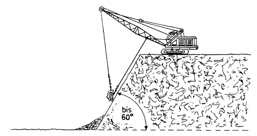 Bild 9: Gewinnung mit Greifbagger im Hochschnitt