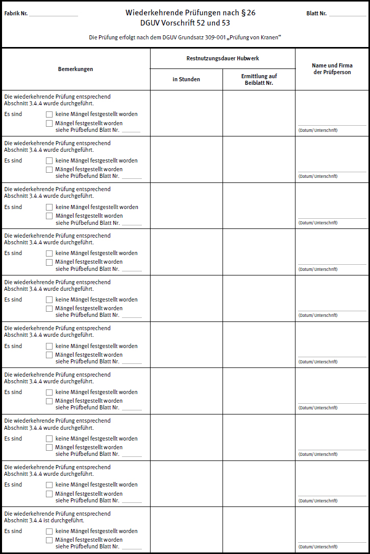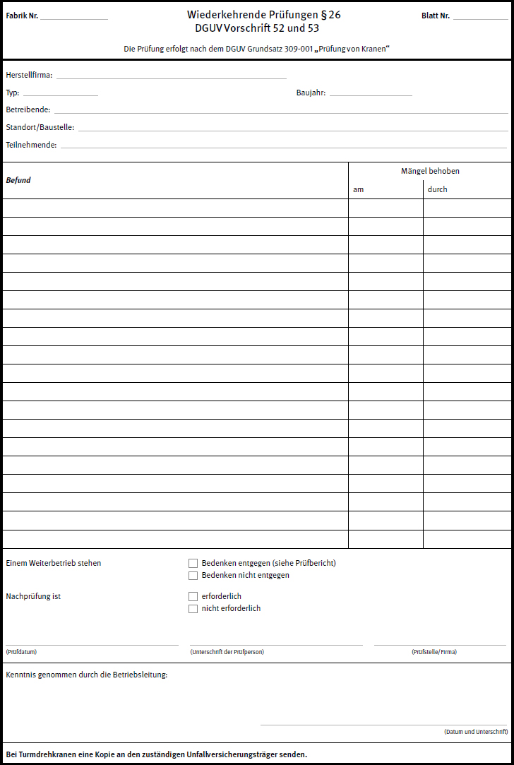 Wiederkehrende Prüfungen nach § 26 DGUV Vorschrift 52 und 53