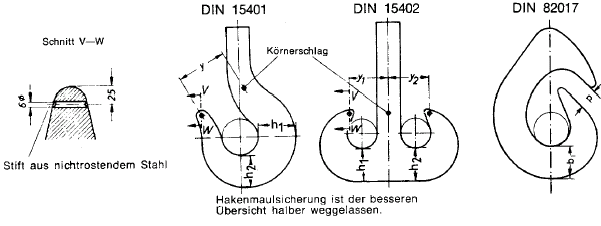 1) Hinweis auf DIN-Norm, außerdem bei Seilen z. B. Machart, Schlagart, Nennfestigkeit der Einzeldrähte