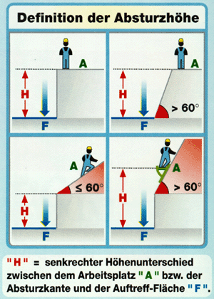 Absturzhöhe ist der Höhenunterschied zwischen einer Absturzkante, einem Arbeitsplatz oder Verkehrsweg und der nächsten tiefer gelegenen ausreichend breiten und tragfähigen Fläche.