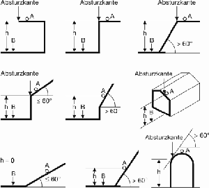 Eine Absturzkante liegt vor, wenn die Fläche unterhalb der Kante mehr als 60° geneigt oder nicht vorhanden ist.