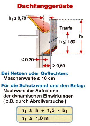 (Traufe) und Gerüstbelag darf 1,50 m (1,20 m bei Systemgerüsten) nicht überschreiten.(Abmessungen)