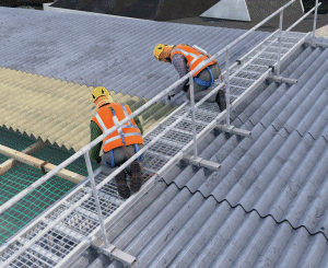 Auf nicht begehbaren Bauteilen sind besondere Arbeitsplätze und Verkehrswege zu schaffen, zum Beispiel durch lastverteilende Beläge.