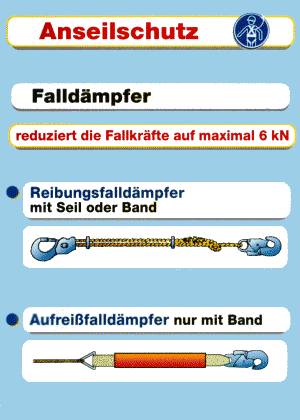 Der Falldämpfer reduziert die Fallkräfte auf den Körper auf maximal 4 kN und auf den Anschlagpunkt auf 6 kN.