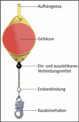 Der Anschlagpunkt liegt oberhalb der angeschlagenen Person: Bedienungsanleitung beachten