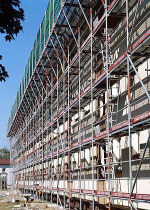 - Verankerungen und Verstrebungen fortlaufend mit dem Gerüst einbauen