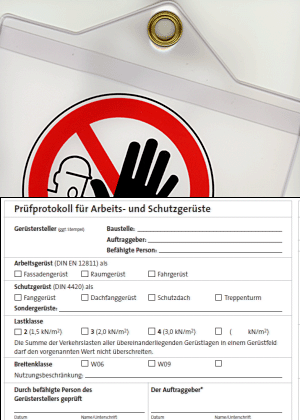 Ein Nachweis der endgültigen Fertigstellung kann das am Gerüst angebrachte