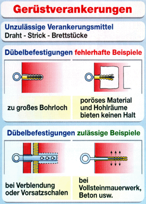 Gute und schlechte Beispiele für Gerüstverankerungen