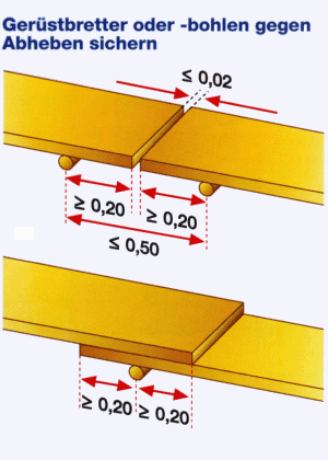 Auflagerung von Gerüstbohlen