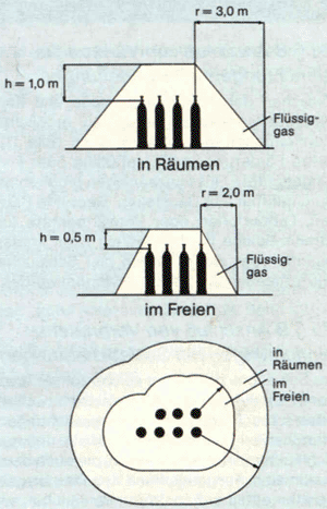 Schutzbereich bei Aufstellung von Flüssiggasflaschen