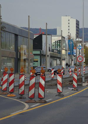 - Bei Längsabsperrungen müssen auf jeder zweiten Leitbake oder auf Abschrankungen im Abstand von maximal 10 m Warnleuchten angebracht sein.